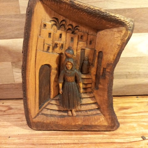 Træskære arbejde, Birgit Nordun, motiv: Kvindeansigt, Trærelief udført af Birgit Nordun i 1961.