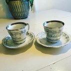 Porcelæn, Mokka kop, Te- eller mokkakop med underkop - påskrift Til Sølvbryllup