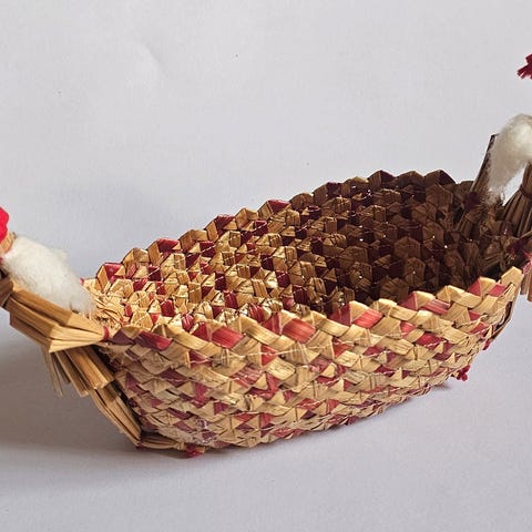 Kurv med julenisser, Hjemmelavet, Kurv med 4 nisser og en kat