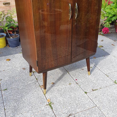 Barskab, Teaktræ med messing, Gammelt særpræget barskab .