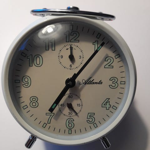 Vækkeur, Atlanta, For samler: Hvid skive med sorte visere og sep.sekund og vække skiver. Uret er I original stand og fungerer som det skal. Mrk. Nr. 39.
