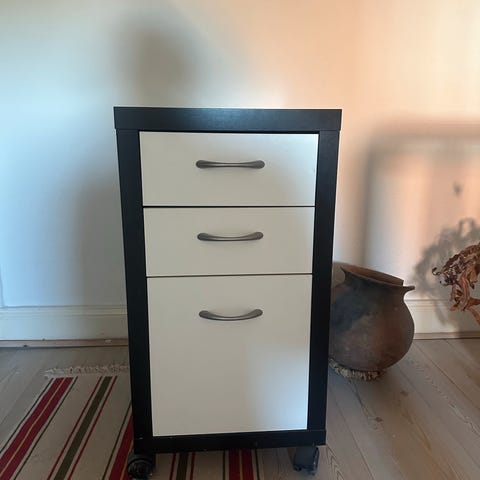 Hvid skab med skuffe og glaslåge. Står som nyt !