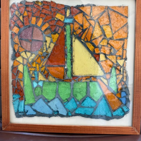 Værket må du gerne betragte som en antikvitet og jeg har fundet denne perle på et loppemarked i en sølle stand, før restaureringen genskabte de smukke skibe, glas og massiv messingramme.