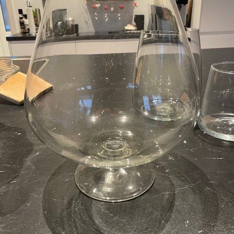 Glasbovle, Holmegaard glasbovle i klart glas 15 cm høj 28 cm udv. mål