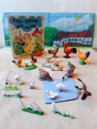 Legetøjsdyr, 25 dele Bondegårdsleg, Lege Dyr, Hønsegård, Høns, Gæs, Kaniner, Ænder, Svanepar, Børnebog, Ælle Bælle mig fortælle bog nr 155, Godnathistorier, Bondegård Dyr, Billedbog, Læsebog, Historier, Påskepynt, Bondegårdsdyr, Borddekoration