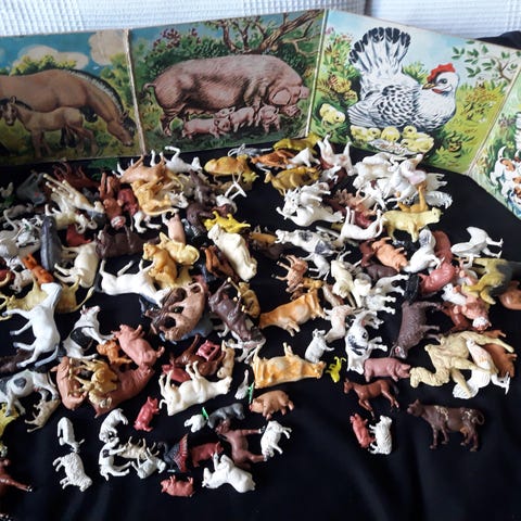 Bondegård, 23 stk Dyr, 1 Bog og 1 stk Sø sælges. Fast samlet pris. Stand fremgår af billederne. (Lot Ælling)