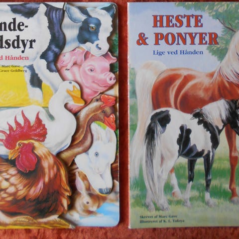 Her får du Høne, Hane, Gås, Svane, And og Kanin sammen med en Ælle Bælle Bog og en malet Sø på masonitplade.
