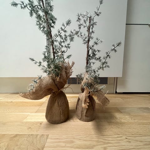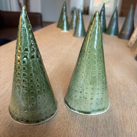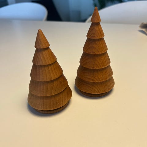2 skønne hånd snittede Grantræer - Juletræer i smukt træ