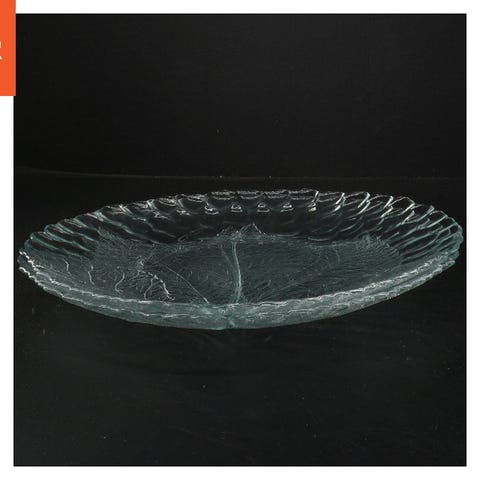 Glas, Blå glasskål , m/flot egetræs bladranke rundt.