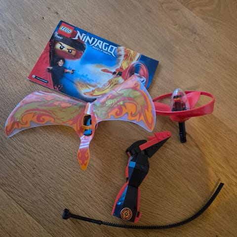 Lego Fairy Kay chain 852783, Fairy with cloth skirt key chain. Pink wings with floral vines pattern. Den er ikke brugt, men har stået til pynt og er falmet lidt på nederdel og vingerne.