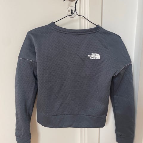 Sweatshirt fra The North Face, str. 32/XS , Hvid/multi, Næsten som ny, Hvid med sort logo og bagpå pink/orange/sort billede.