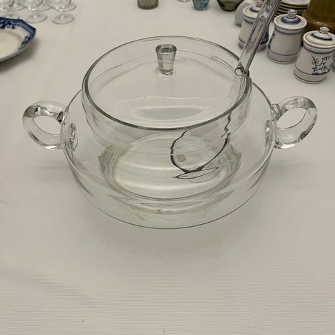 Glasbowle, Glas, 80 år gl., Utrolig smuk Glasbowle, med tidens patina, god til punch til fester, eller fyldt med rosenhoveder. Fin til forretning med chokolader, eller hjemmet i køkkenet. Henv.SMS 61687009. Kig Birgers Brocante på Instagram.