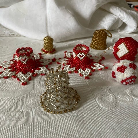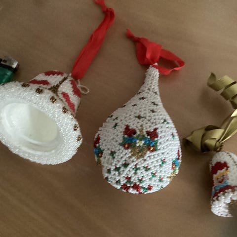 Perle julepynt, 10,- pr del. Alle for 100,- sender gerne med dao for købers regning eller kan hentes I Søborg.