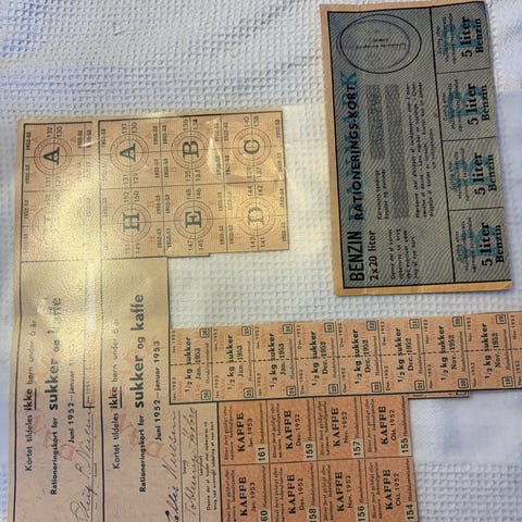 Andre samleobjekter, Rationeringsmærker , sukker og kaffe 1952-53