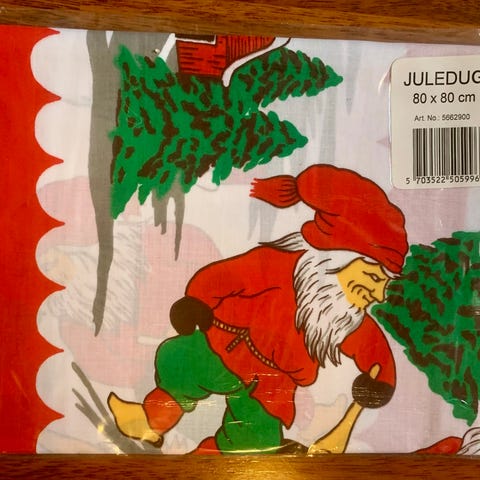 juledug 86x86 cm, ny, små flakoner håndbroderede stk kr 35,00