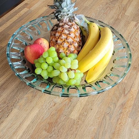 Klar glas skål H: 8 x 19.5 cm og tung på 1.3 kg
