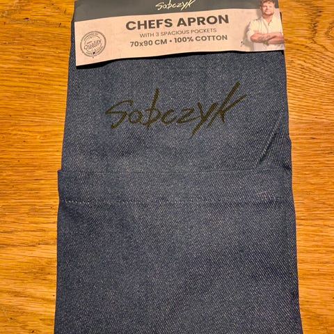 Kokkeforklæde M/K, Søstrene Grene, str. 78L x 100B, Gråbrun/Sort stribet, Bomuld, Aldrig brugt, Smalstribet, bindes i taljen, Stadig m/prismærke på. Nypris 59,95kr, sælger for 30kr + evt DAO-fragt eller afhentning Hellerup.