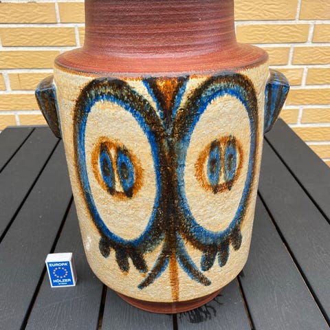 Keramik, Gulvvase, Sjøholm, Ikonisk gulv vase med tribal mønster (Burundia serien) designet af Svend Aage Holm Sørensen for Søholm, Denmark.