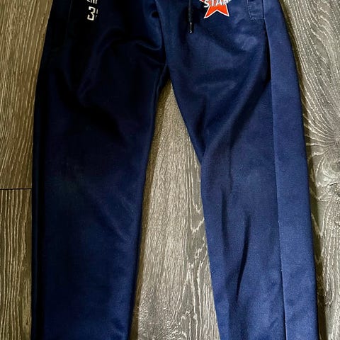 Meget lidt slitage på selve tallet 22 og logoet.. .. men ellers er selve buksen og Adidas logoet som var de købt igår.