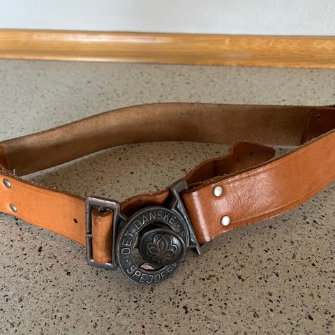 Spejderudstyr, Ældre sort læderbælte, sølvfarvet spænde med spejder logo, samleobjekt