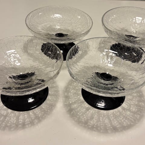 7 fine isglas / dessertglas fra serien Craqueleret, af Jacob E Bang for Holmegaard, 1928