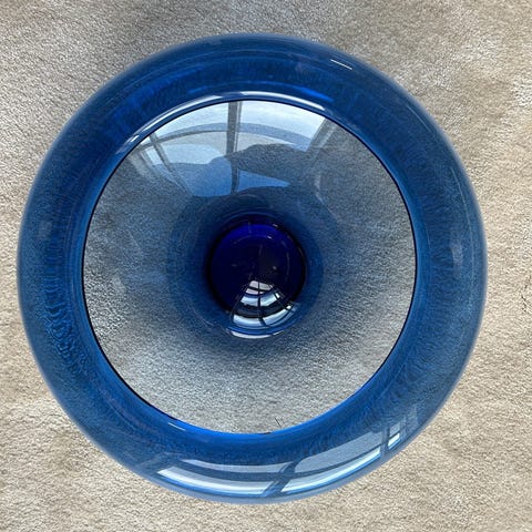 Stor ældre blå provenceskål fra Holmegaard. 35 cm i diameter og 10 cm høj.