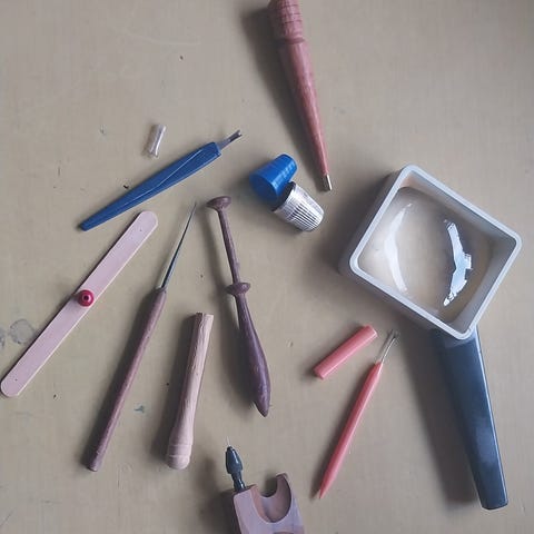 Meget gamle antikke hækle dele, kan også anvendes til knipling.