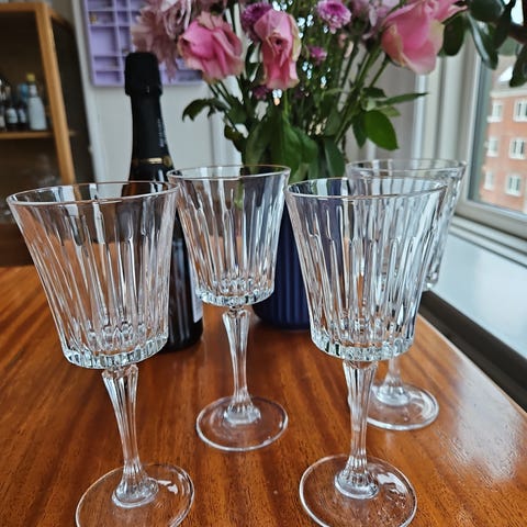 Glas, Lyngby rødvinsglas, Lyngby Glas, 12 klare rødvinsglas, mundblæste og håndslebne efter gamle traditioner.