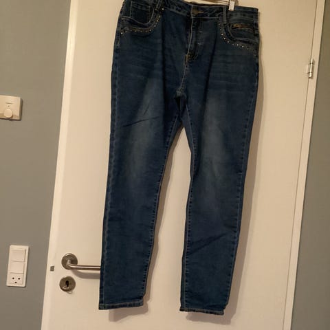 Andet, Jeans, Cassiopeia, str. 50, Blå, Cotton,bomuld, polyester,Viskose, elanstan, Næsten som ny, Brugt 1 gang.