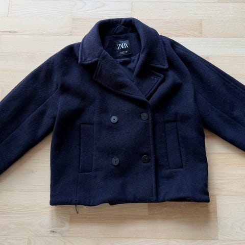 Frakke, Uldfrakke, Designers remix, str. 152, Flot velholdt sort Designer uldfrakke med lækkert silke-for, aldrig brugt. Fra desingernes Remix ved chefdesigner Charlotte Eriksen, røgfrit hjem