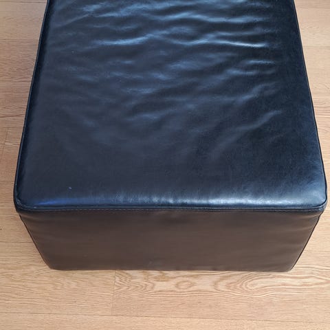 Puf, læder, Virkelig lækker rød fodskammel / siddeplads. Ingen skader. Den bløde pude er fast monteret. Der er et lidt mærkeligt lys på billederne. Afhentes i Børkop. Længde 90. Bredde 60. Højde 45.