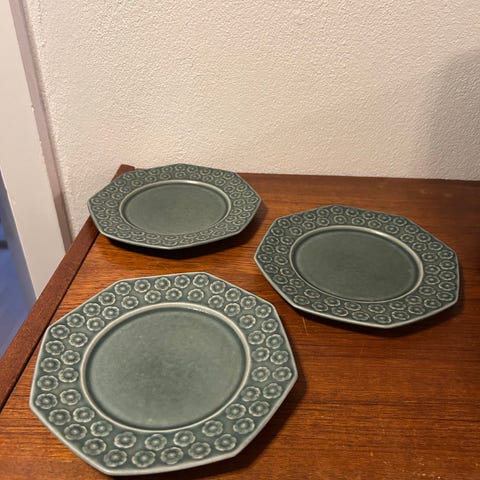 Keramik, 7 Kagetallerkener, kande, skål mm, Kronjyden relief, Diverse kronjyden relief dele: