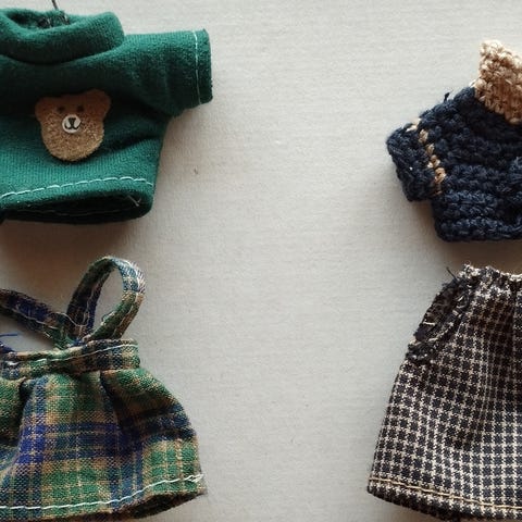 Nyt hjemmestrikket/syet tøj og tæppe til fx Maileg mus/kaniner str ca 10-14 cm.