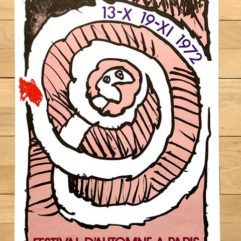 Original udstillingsplakat, Pierre Alechinsky, b: 50 h: 56, Vintage fransk udstillingsplalat af Pierre Alechinsky til udstilling i Galerie de France, Paris 1977. Fin stand.