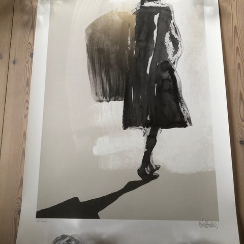 litografi, motiv: Abstrakt, b: 57 h: 78, Kunstplakat i stålramme Usigneret