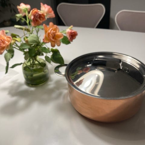 Kobberkasserolle d.17 cm h 8 cm kr. 400