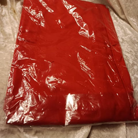 Jule forklæde, Helt nyt juleforklæde i farven rød med tekst: god jul.