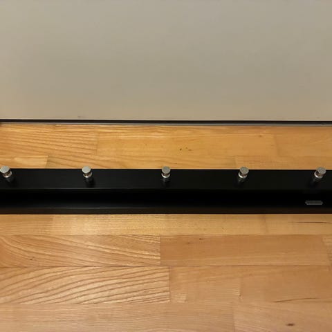 Skrugerne er pt blevet væk, men det er standard så de kan let erstattes. Selve skruerne til montering i væggen medfølger, selvom de ikke er afbilledet.