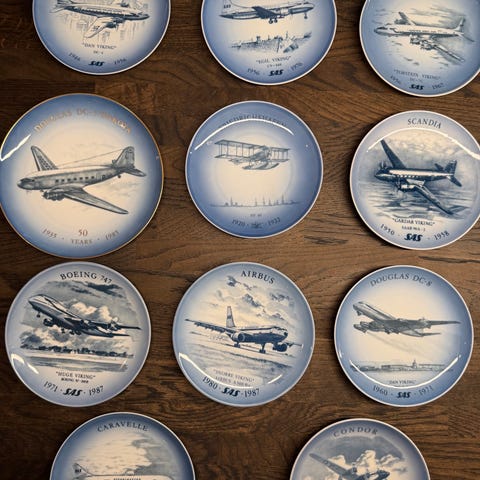 8 stk. Royal Copenhagen platter, motiv diverse luftskibe af kunster Bent Karlby.