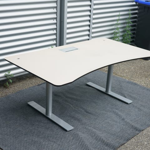 Skrive-/computerbord, b: 140 d: 80, Hæve/ sænke skrivebord med grøn linoleum bordplade og sort stel. Købt nyt i 2023 og ikke brugt. Nypris 4.400. Sælges for 3.000 stk. Haves 4 styk. Sælges samlet for 12.000 kr.