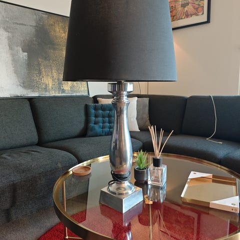 Lampe, Rokoko, Flot Sølv plet rokoko bordlampe omkring 1900.