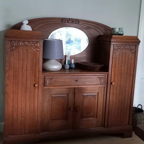 Vitrine/ Tårnbuffe, 100 år gl., b: 132 d: 060 h: 220, Byd evt. Alder ukendt? Højde + 8,5 cm I løs buet topstykke