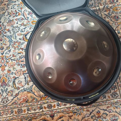 Håndlavet handpan, brugt ganske sparsomt, kommer i en flot og handy taske med isolering og hård cover.