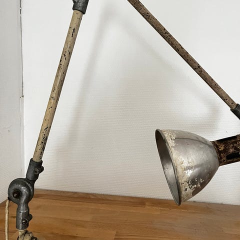Tysk arbejdslampe fra 1950`erne i absolut fineste stand med ny snoet stofledning på 3 m. Højde 47 cm. Fungerer perfekt - Fast pris - sender gerne