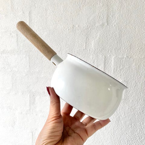 Flot lille emalietet gryde. Sort udvendig - grå indvendig.