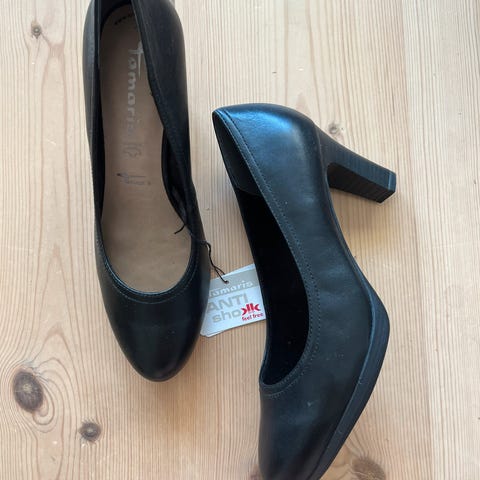 Pumps, str. 38, Tamaris, Sort, Læder , Ubrugt, Ny