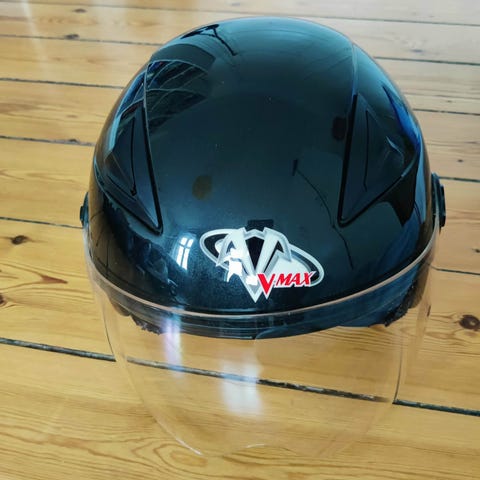 Hjelm, Vcoros, str. Full Face, Vcoros, light black (tåget "glas"), 3 snap full face visir til åben hjelm. Aldrig brugt.