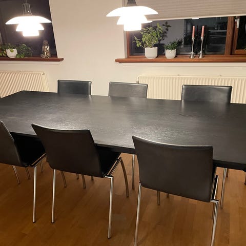 200x 95 kan udstrækkes med 2 ekstra plader som gemmes under bordet til 280 cm i alt
