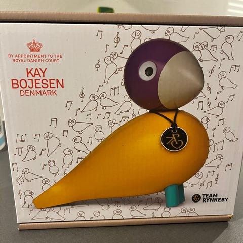 Vito kay bojesen team Rynkeby , kay bojesen, kay bojesen Vito sangfugleparret i specialudgave, lavet i samarbejde med Team Rynkeby. De er kun produceret i 3000 eksemplarer.