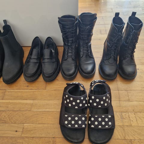 Tykke varme sorte skoovertræk, ca. til str. 41, ca. 30 cm. lange. Mrk. Yosemite. De er gået i stykker i bunden men siderne og overdel virker fint og varmer. Lynlåse virker og er helt intakte. Fra ikke ryger hjem. Nyvasket og kan sagtens bruges til f.eks. cykling.